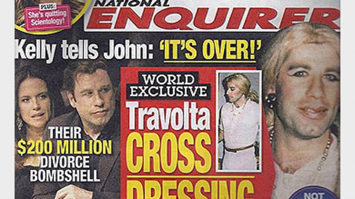Mientras enfrentaba las acusaciones por acoso sexual, la revista The National Enquirer publicó unas fotos que datan de 1997, en las que se ve a Travolta en una fiesta, vestido de mujer; usa una peluca rubia, vestido blanco, aretes, collar y maquillaje.
