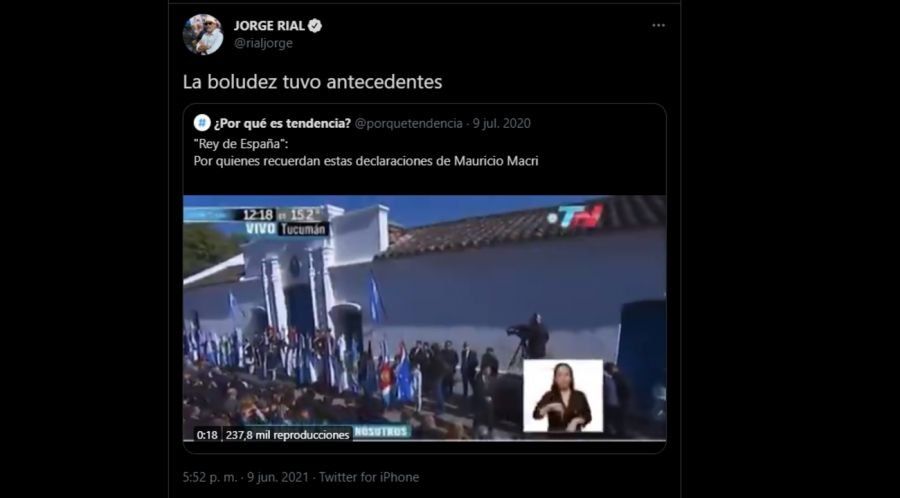“La boludez tiene antecedentes”, expresó Rial, compartiendo el video de Mauricio Macri diciendo que los argentinos seguramente tenían “angustia” por tener que separarse de España al declarar la independencia.