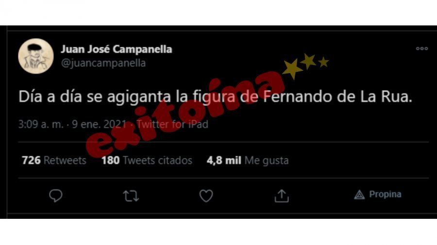 De la Rúa falleció el 9 de julio de 2019 a los 81 años de edad, y aquella vez también hubo polémica en la red en medio de la repercusión por la noticia. Horas después de su posteo, Campanella borró el tuit.