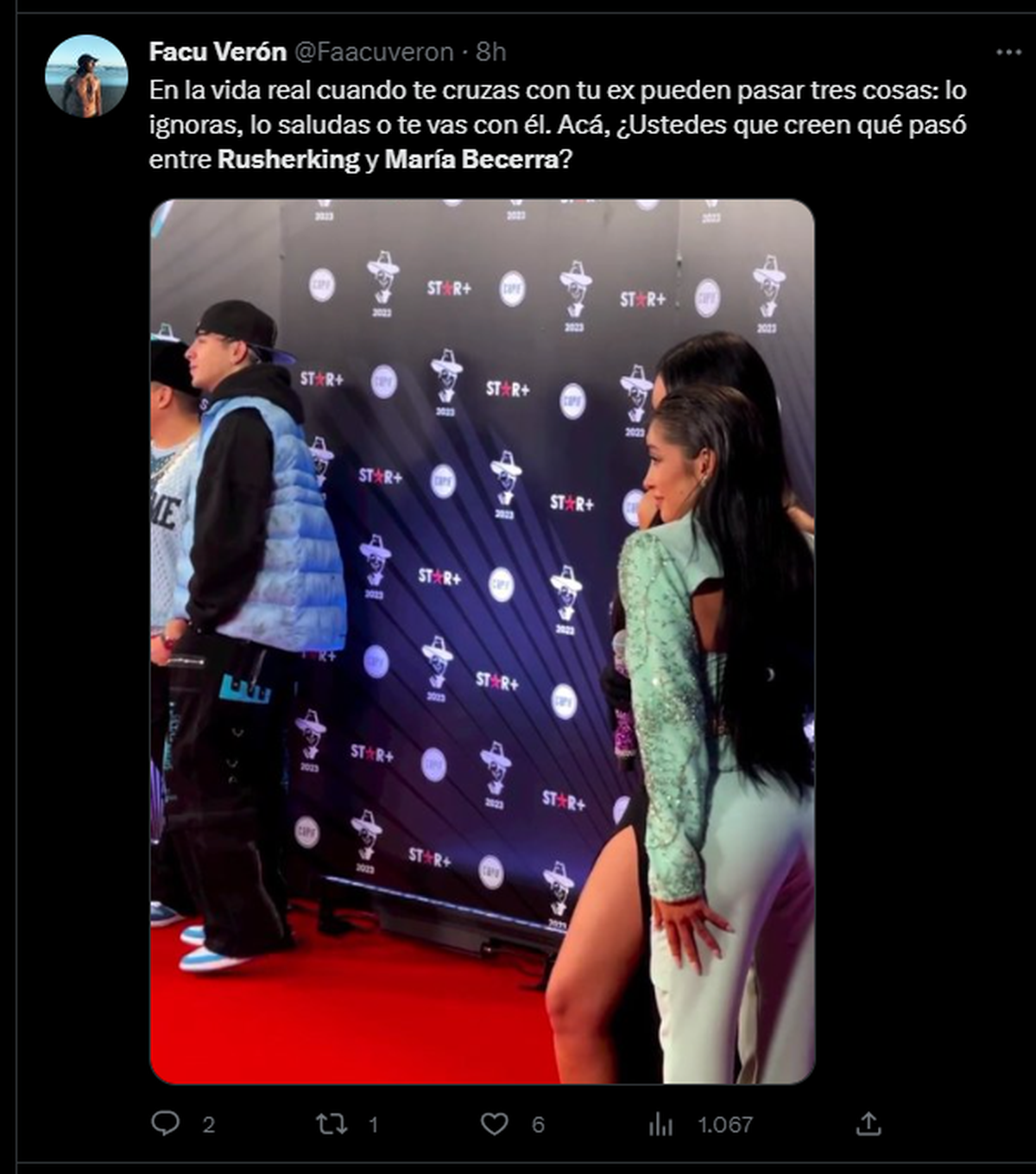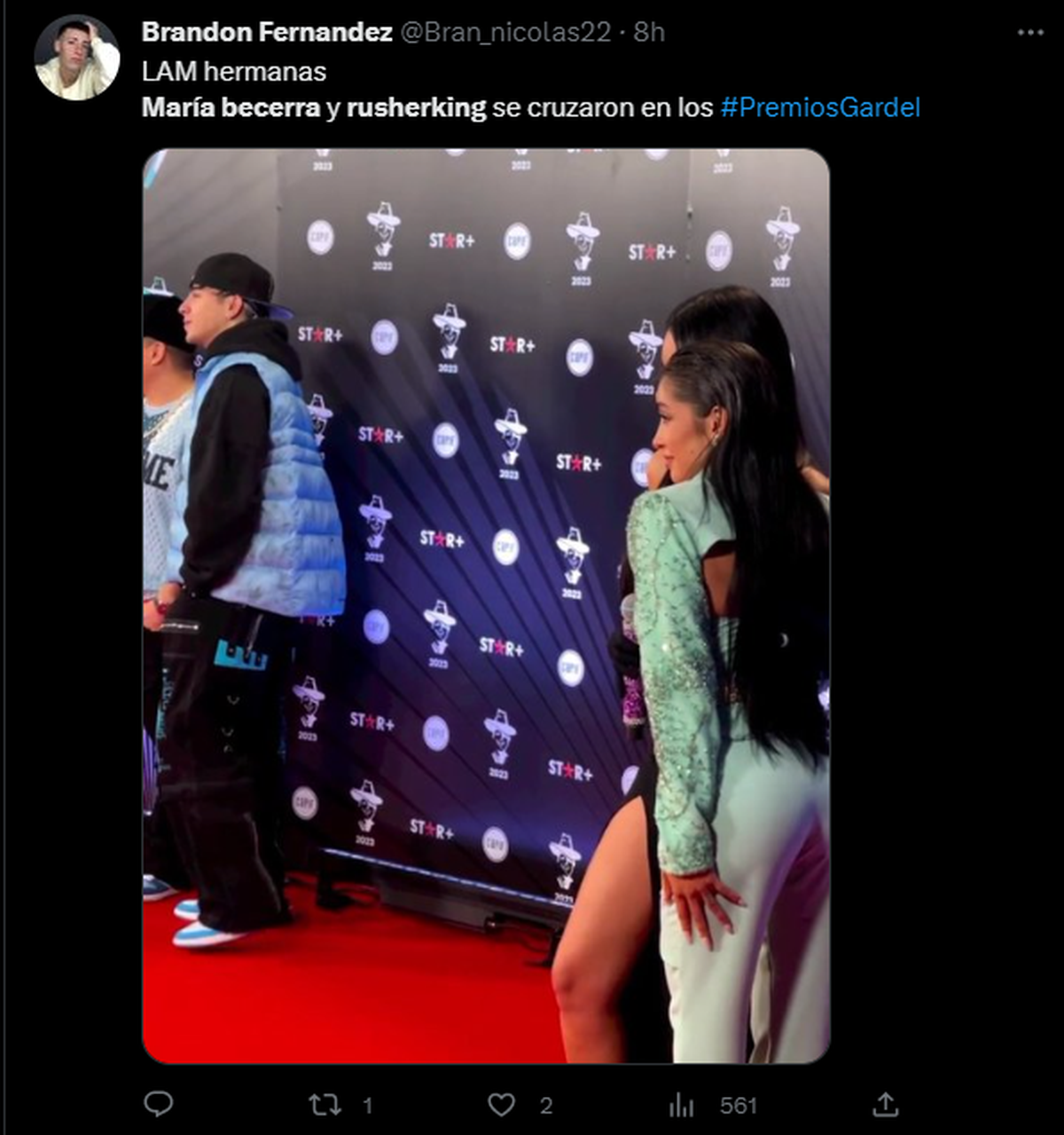 Este martes, se los vio muy cerca en la alfombra roja de los Premios Gardel 2023. Si bien no es la primera vez que sucede, los fanáticos de la expareja difundieron en sus redes sociales el encuentro que se hizo público.