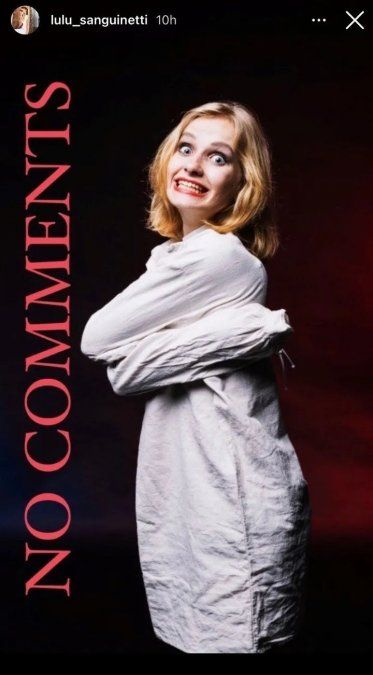 Pero las palabras de Salazar no fueron bien recibidas por Lulú Sanguinetti, la mujer que quedó en medio de la modelo y Redrado. La empresaria recogió el guante y en su cuenta de Instagram publicó una foto de una mujer con un chaleco de fuerza y la frase “No comments” (sin comentarios).
