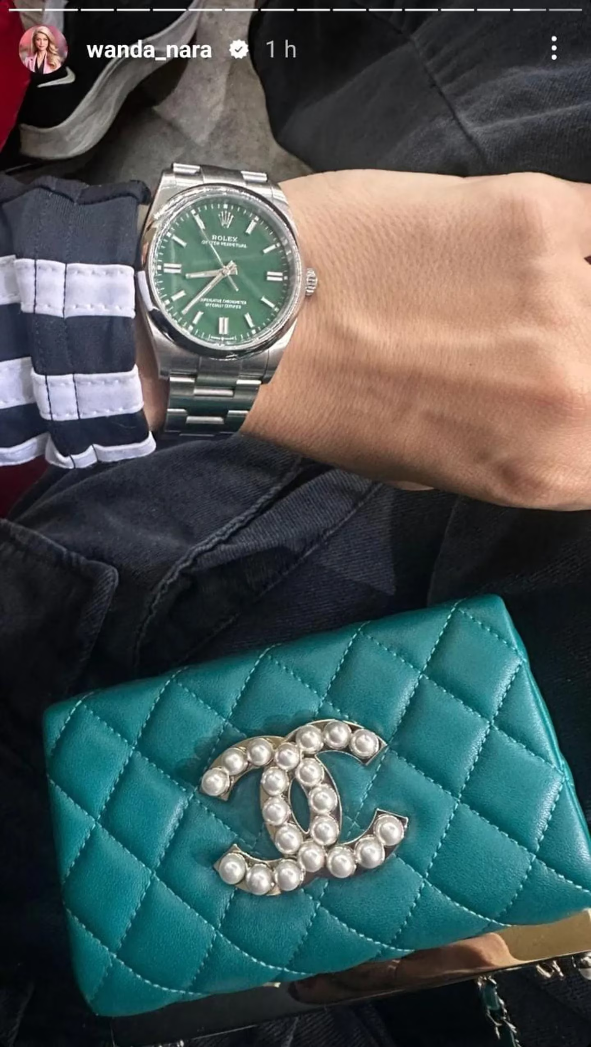 No obstante, un elemento en particular dentro del conjunto de Wanda Nara atrajo todas las miradas. Nos referimos a la exquisita mini cartera proveniente de la renombrada casa de moda internacional, Chanel. Sin lugar a dudas, esta selección refuerza la imagen impecable y estilizada de la mediática, complementando su conjunto de tonalidad negra total con un mini clutch que incluye una cadena de color verde.