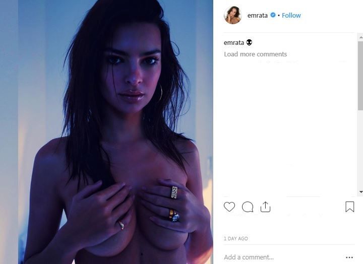 Posando frente a cámara, y con su miraba más sexy, Emily Ratajkowski está totalmente desnuda. Pero la modelo tapa sus pechos con sus manos. En la publicación, solo puso un emoticón de extraterrestre. La publicación alcalzó los 1,5 millones “me gusta”, y tuvo más de 10 mil comentarios. Pero también generó polémica ya que Instagram suele censurar a quienes suben este tipo de fotos, y muchos acusaron que ella tenía trato preferencial.