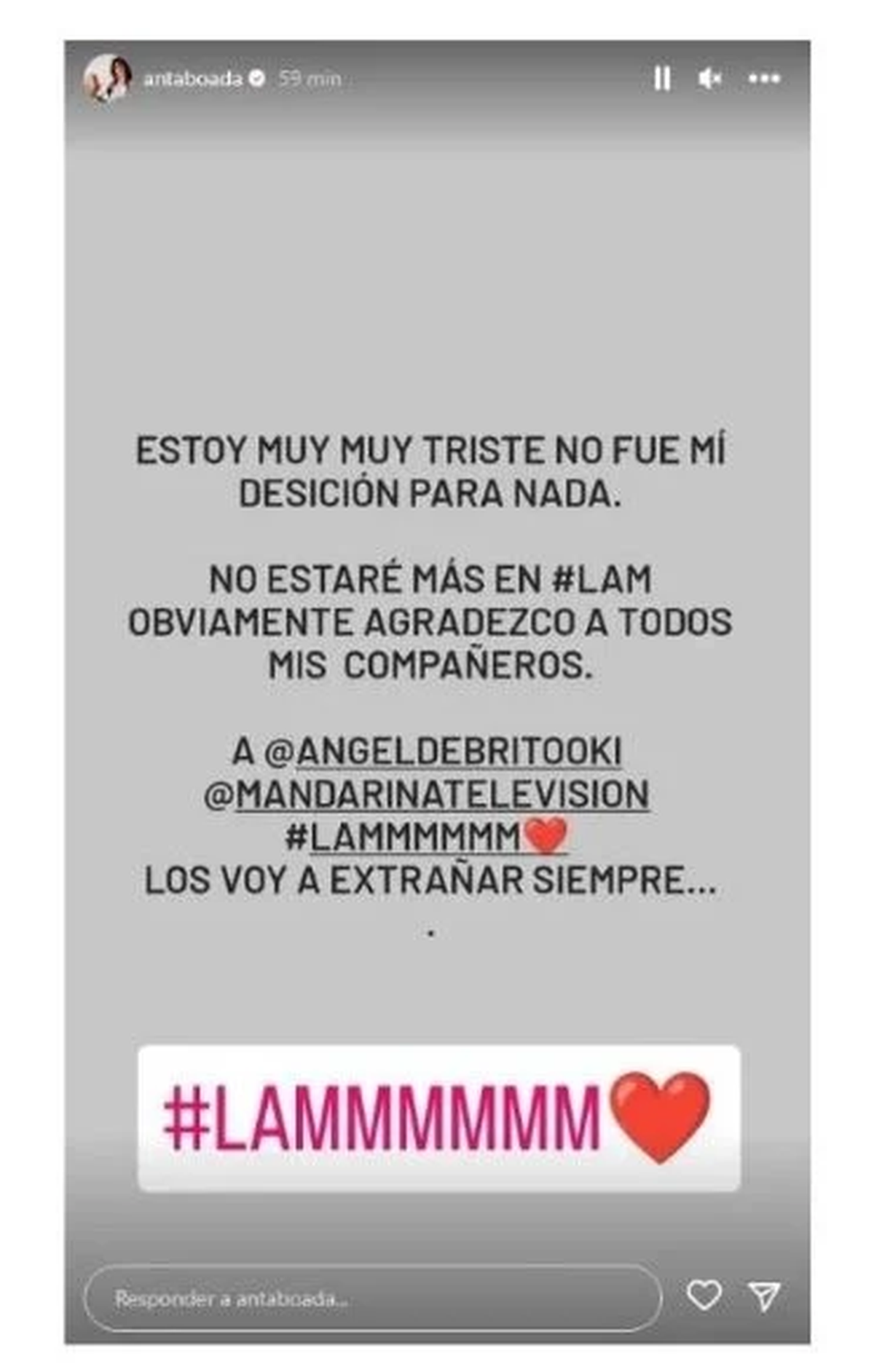 Luego de conocerse que Andrea Taboada ya no iba a ser más parte de LAM, el programa que conduce Ángel de Brito por América, la panelista se despidió del ciclo con unas dulces palabras para todos sus compañeros.
