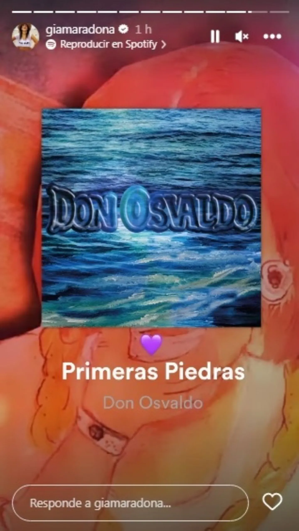 Tras los rumores, la hija del 10 publicó una historia de Instagram que todos tomaron como modo de respuesta. Se trata del tema “Primeras piedras” de la banda Don Osvaldo. La canción en cuestión habla sobre los prejuicios de las personas y tiene potentes frases como “Siempre es grato masacrar al que no vive como yo”.