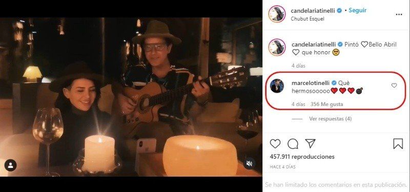 Al ver el video, su padre, Marcelo Tinelli, se enterneció muchísimo y no pudo contener sus ganas de comentar: "¡Qué hermoso!", expresó luego de responder con emojis de corazoncitos rosas.