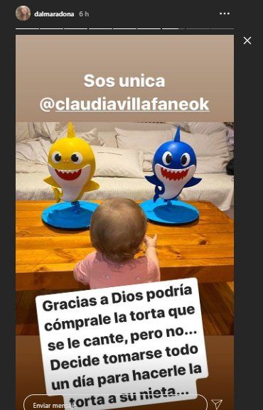 No es la primera vez que Dalma o Gianinna destacan el amor y la dedicación que Claudia le pone a todo lo que hace, especialmente cuando está dirigido para sus hijas o, como en este caso, para uno de sus nietos.