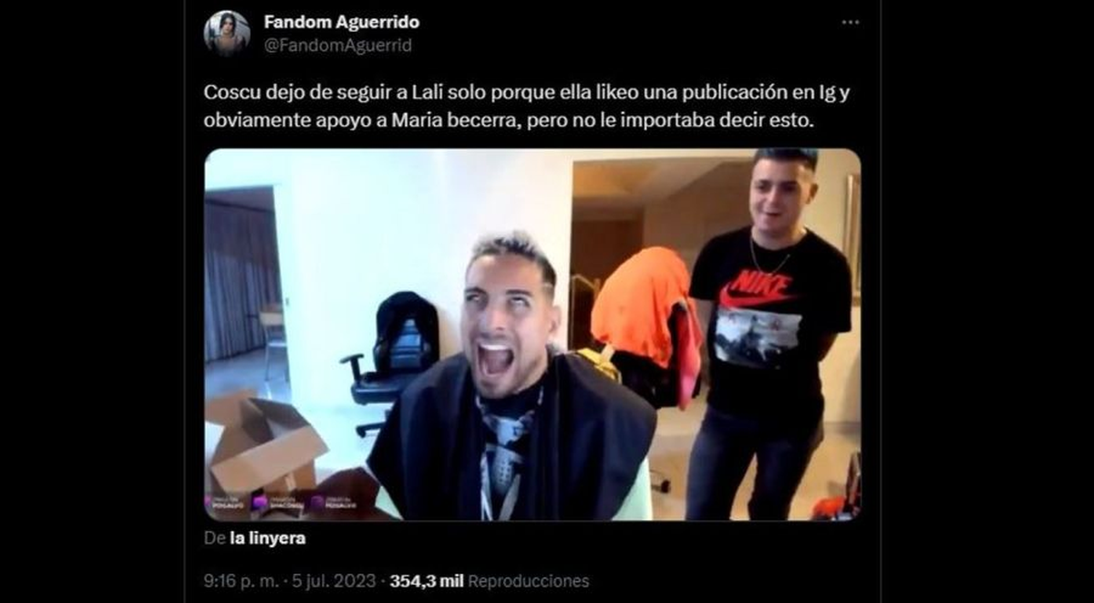 Si bien la cantante, compositora y actriz argentina no dijo ningún nombre, sus fans entendieron rápidamente que se trataba de Coscu. Para entender el marco, una cuneta fan de Lali explicó que "Coscu dejó de seguir a Lali solo porque ella likeó una publicación en Instagram y obviamente apoyó a María Becerra, pero no le importaba decir esto", indicó.