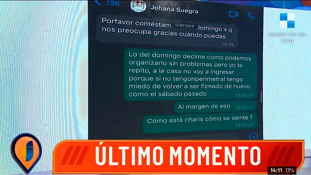 En la charla, Defederico le pide si pueden a quedar en un lugar en común y le recuerda que hay una restricción perimetral. Johana le responde que no hay ninguna restricción y que podía pasar a buscar a las nenas por la casa de Cinthia.