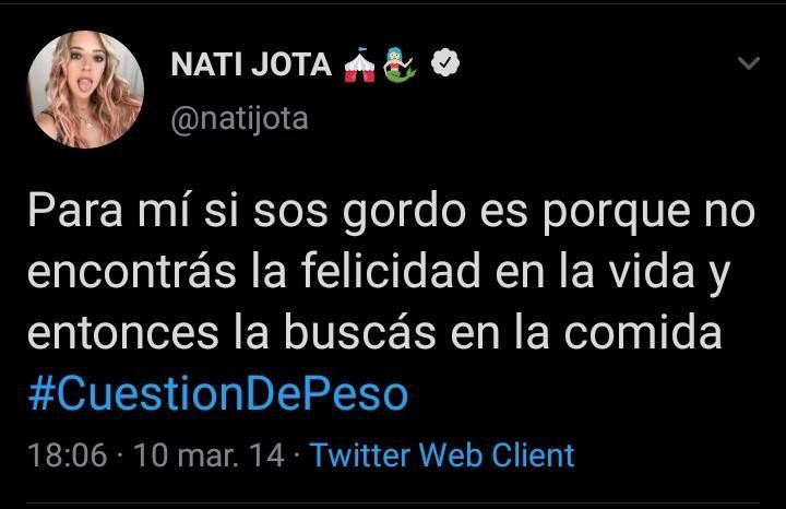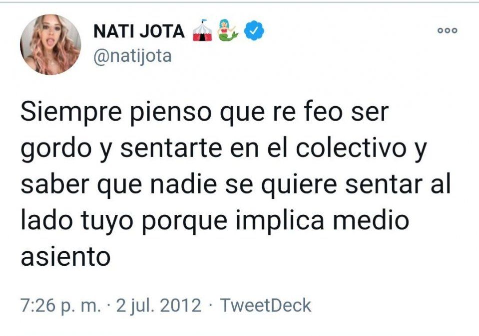 En pleno escándalo por los polémicos y discriminatorios tuits del capitán de Los Pumas, Pablo Matera, y de otros jugadores del seleccionado, los usuarios de Twitter también reflotaron tuits viejos de Nati Jota.
