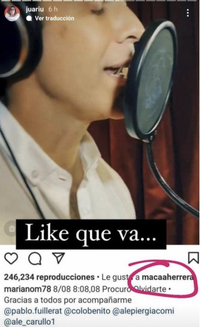 Acto seguido, también mostró un like que la modelo le puso a Mariano en un clip en el que se lo ve cantando. "Like que va...", expresó la panelista, pícara, deslizando que habría mucha buena onda entre ambos.