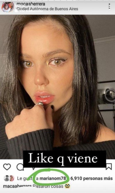 Y para cerrar, también mostró que Mariano le dio "me gusta" a una selfie que Maca posteó luciendo su nueva cabellera morocha. "Like que viene", cerró.