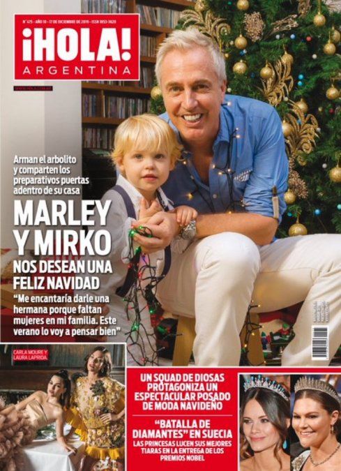 Marley junto a su pequeño fueron las figuras destacadas de Hola. Además, en la imagen se puede observar una tierna postal en la que aparecen padre e hijos muy sonrientes. “Marley y Mirko nos desean una Feliz Navidad” tituló el medio gráfico. En tanto, Alejandro Wiebe no esquivó las preguntas y se animó a confesar su deseo más grande para el próximo año.