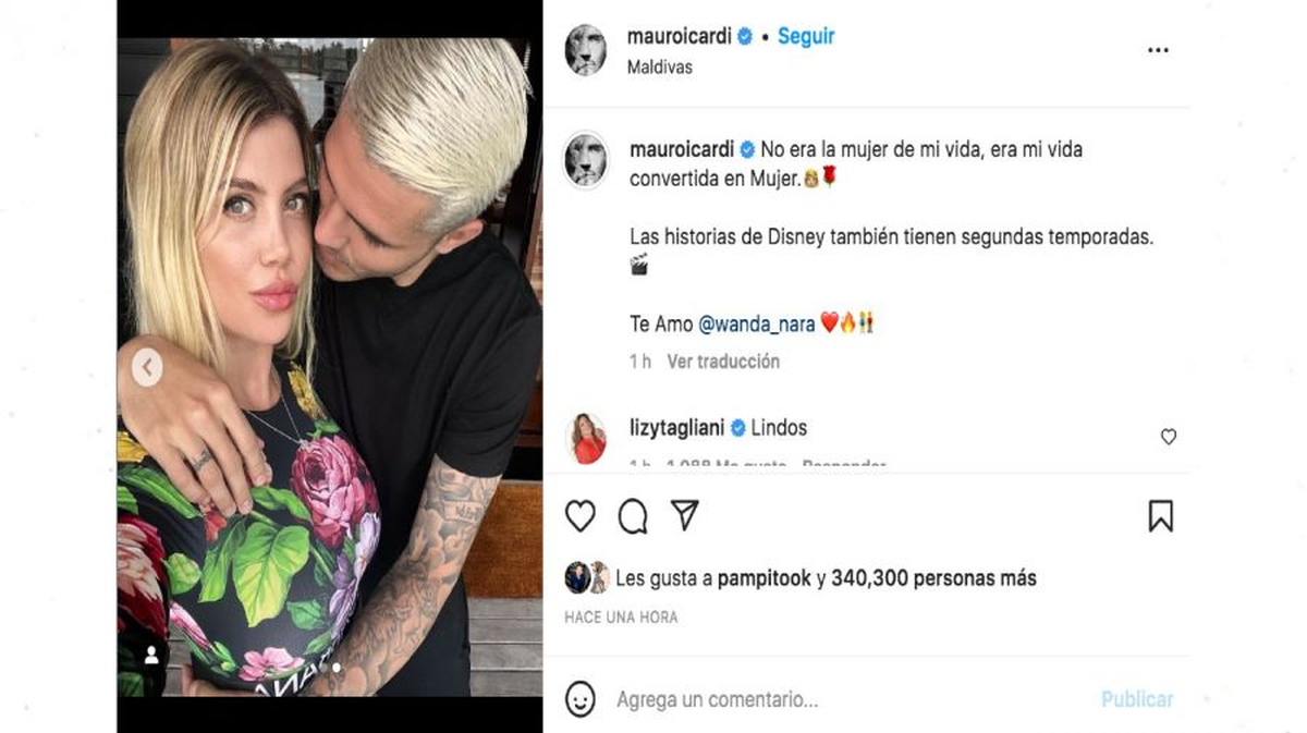 Mauro Icardi confirmó su reconciliación con Wanda Nara a través de su cuenta de Instagram, luego de haber pasado unas vacaciones en Maldivas juntos, tras las contundentes declaraciones de la empresaria sobre el final de su matrimonio.