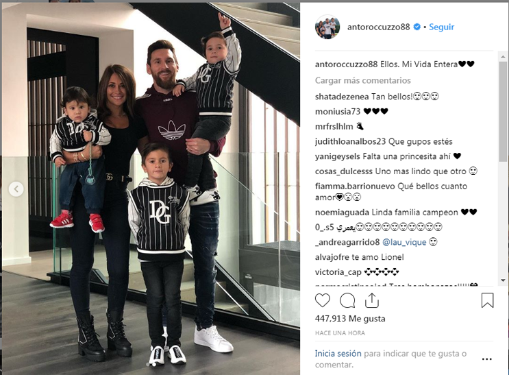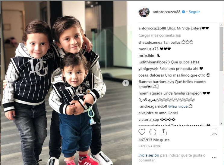 En la leyenda de las fotos de los chicos , Antonela escribió “Ellos. Mi Vida Entera”. En un par de horas el comentario provocó muchas reacciones de ternura entre los usuarios de la popular red social.