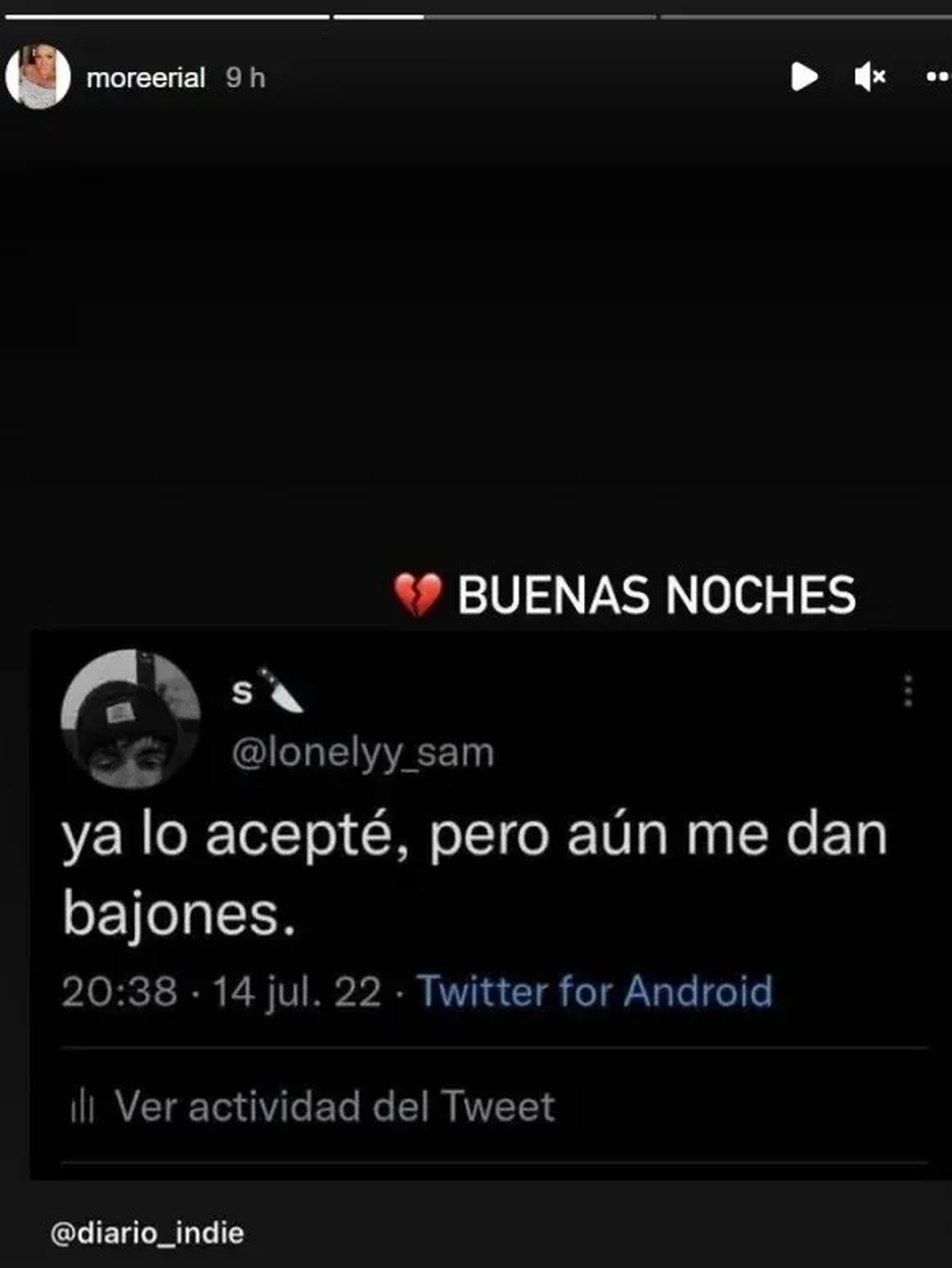 "Ya lo acepté, pero aún me dan bajones", fue el tweet que compartió More, junto a un corazón partido.