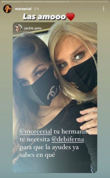 La “nueva mamá” de Morena Rial, no hablaba de Rocío Rial sino de su propia hija, ya que fue a ella a quien arrobó. More recogió el guante y desde su cuenta compartió la foto junto al mensaje: "Las amo".