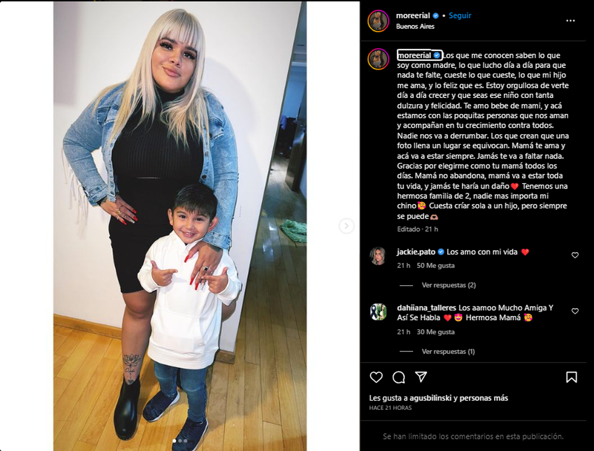 “Los que me conocen saben lo que soy como madre, lo que lucho día a día para que nada te falte, cueste lo que cueste, lo que mi hijo me ama, y lo feliz que es”, escribió en las primeras líneas de su posteo en Instagram.