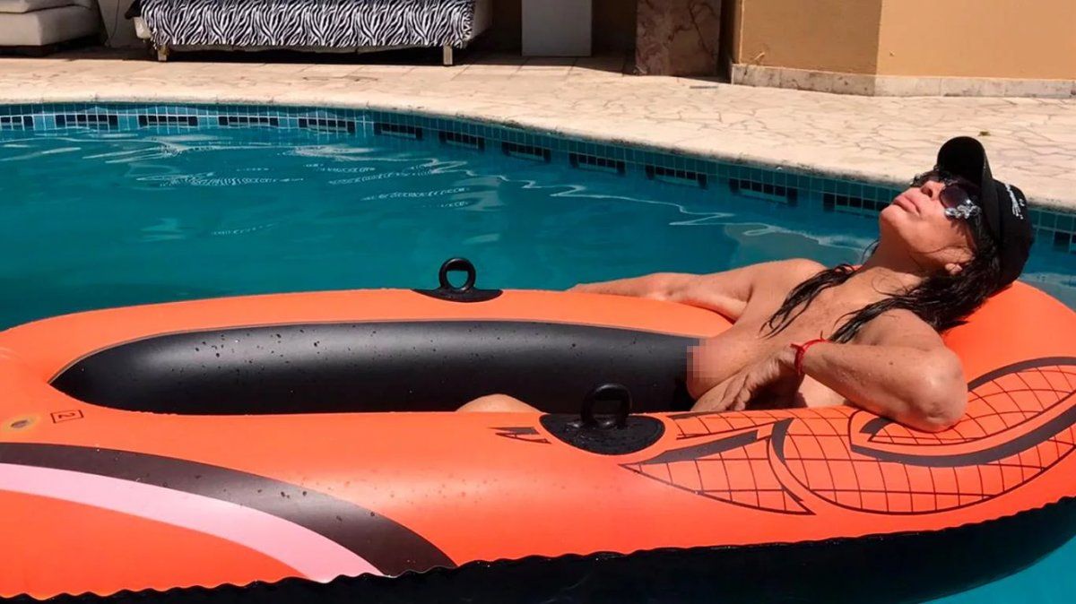 Moria Casán generó un gran revuelo entre sus seguidores con una foto en topless, una cábala que la diva practica cada verano para un año lleno de éxito. La conductora de Incorrectas subió a su cuenta de Twitter una imagen en la que está sin maquillaje y desnuda en un gomón en la pileta de su mansión en Parque Leloir.