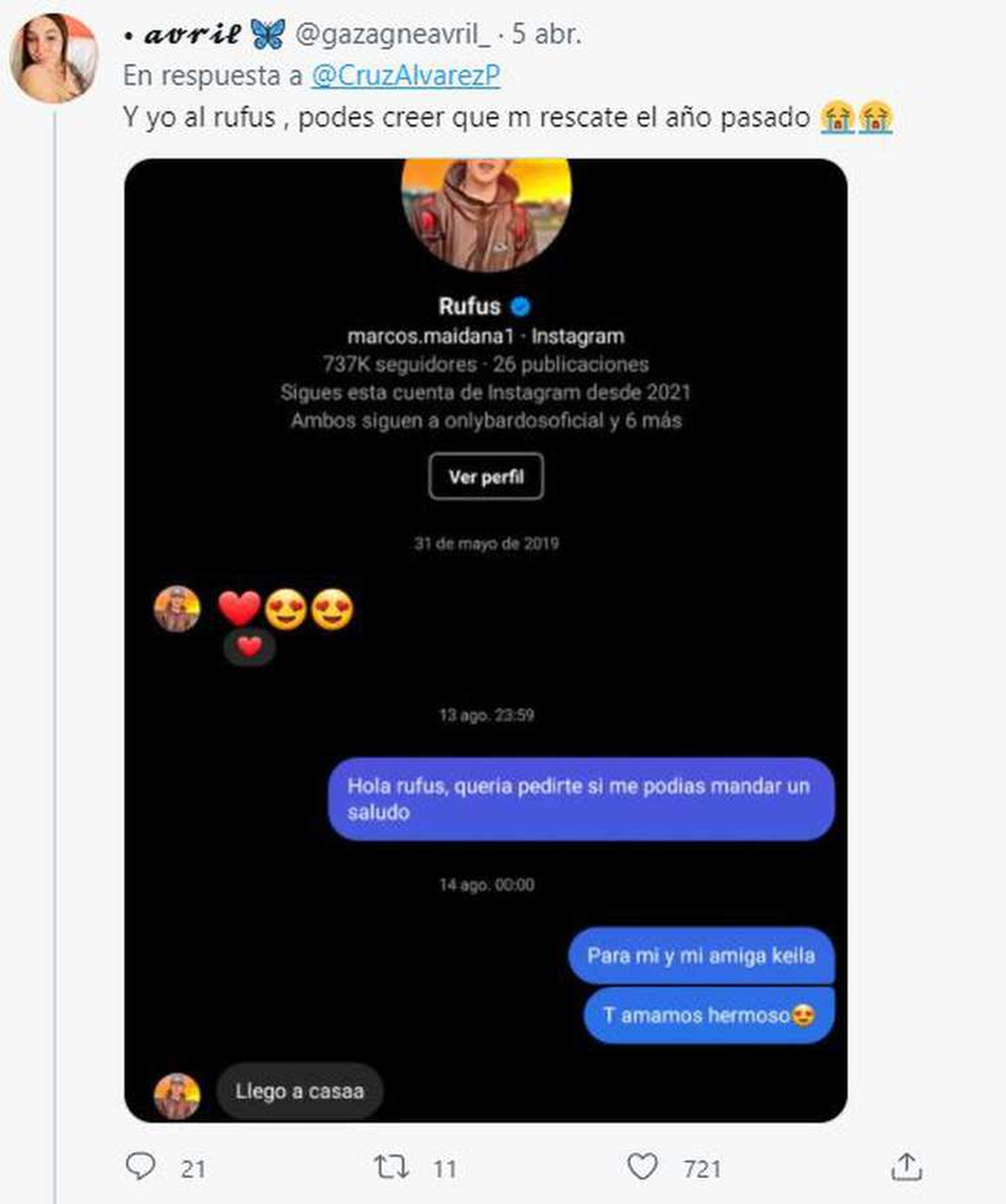 Muchos fanáticos de la intérprete de “Entre nosotros” comentaron el posteo con mucho sarcasmo. “Si no la quisiste antes, ahora no la busques, papi”, le dijo uno. Y otro acotó: “El pibe después de ver el mensaje: ‘no me la contés’”.