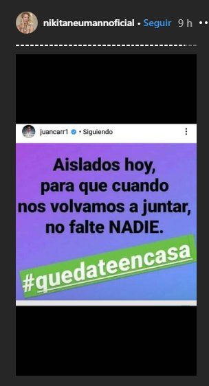 Al igual que otros famosos que viven la cuarentena decretada por el Gobierno Nacional, Nicole Neumann comparte su experiencia y reflexiones con sus fans a través de las redes.