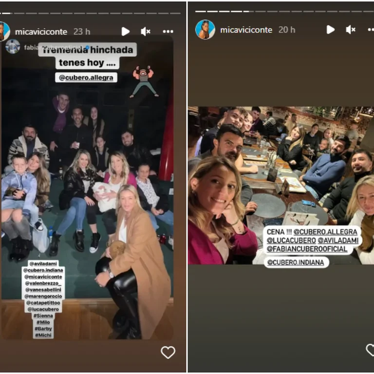 “Tremenda hinchada tenés hoy”, escribió el exfutbolista en una de sus stories de Instagram, junto a una postal en la que se veía la familia junto a varios amigos, entre los cuales se destacaba la presencia de Rocío Marengo, íntima de Mica. En tanto, el excapitán de Vélez también compartió una tierna postal junto a Viciconte y Allegra. Ambas imágenes fueron replicadas por la ganadora de la tercera temporada de Masterchef Celebrity, que se mostró muy feliz de poder acompañar a la pequeña, y también publicó una foto de la cena familiar que compartieron post debut actoral.