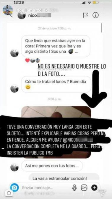 "Qué linda que estabas ayer en la obra. Primera vez que iba y es algo distinto. Sos una bomba. ¿Cómo te trata el lunes? Buen día. Así me ponés con tus fotos...”, le comentó el hombre a través de un mensaje privado.