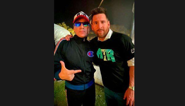 Messi bailó al ritmo de Damas Gratis y no dudó en posar feliz junto al líder de la banda: