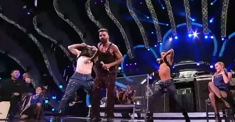Pero no hay por qué asustarse, se trata de uno de los bailarines del show “Movimiento Tour” y, es obvio que todo lo que pasa en tarima es para complacer a los fanáticos.