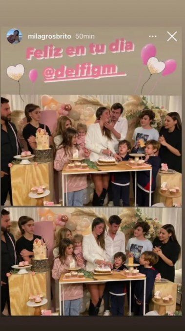 A su vez, compartió imágenes de la celebración y agradeció a Pampita por el obsequio que le dio a su hija. "Quiero compartir con ustedes el regalo divino que le hizo Caro a Delfi. Mandó a imprimir todas estas fotos de gente que Delfi quiere mucho y que no pudieron estar con ella. Trajo todos estos globos… la idea me pareció alucinante. Esto le queda para siempre, me pareció una genialidad y el tiempo que se tomó para hacerlo. Divino", contó.
