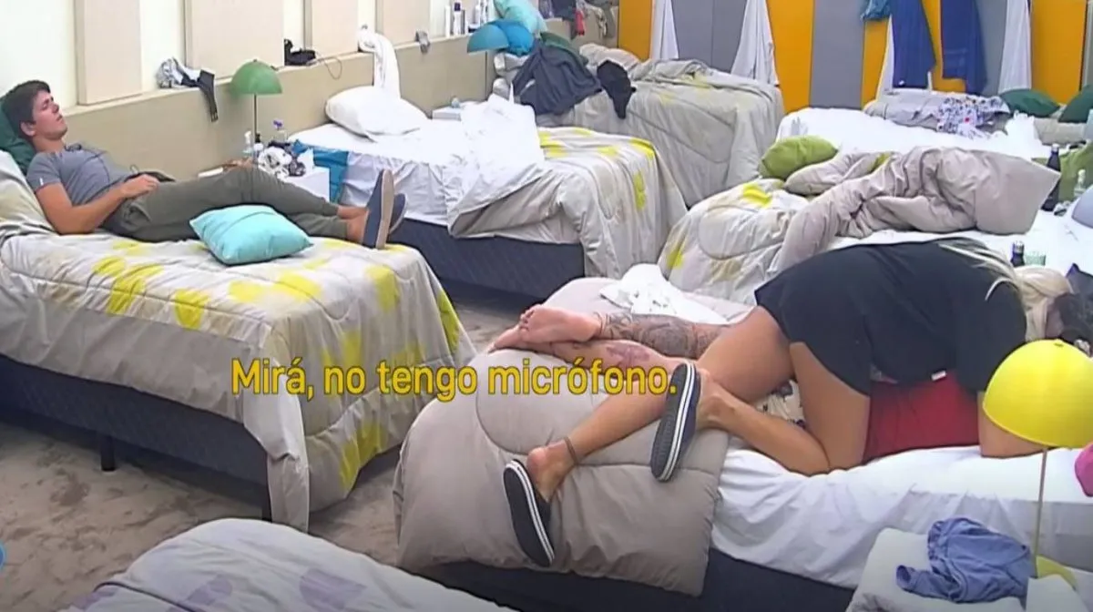 Lucila Villar, La Tora, infringió una de las reglas básicas de Gran Hermano: hablar sin el micrófono puesto. "No tengo micrófono", se escucha decir a la estudiante de programación neurolingüística cuando se abalanza sobre Juan, que está acostado en su casa boca abajo. Acto seguido, la jugadora le susurró al oído a su compañero.