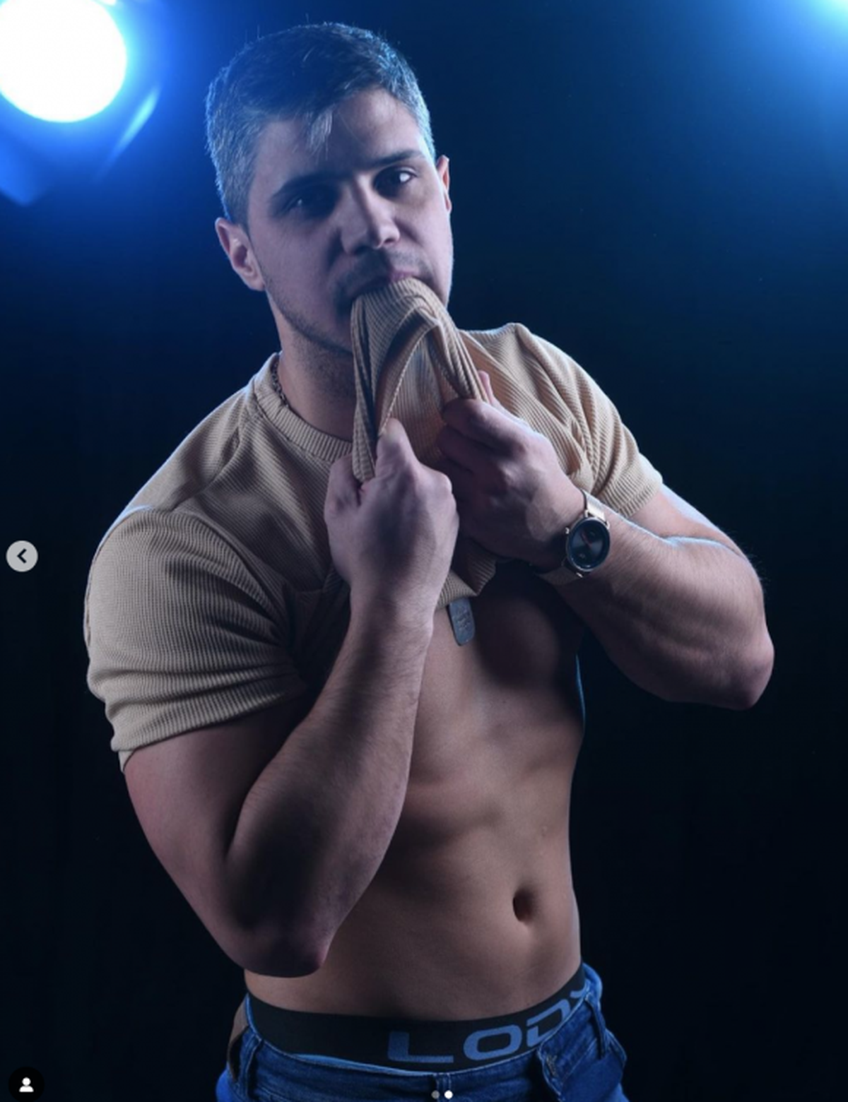 El Conejo de Gran Hermano compartió un adelanto de las imágenes en su cuenta de Instagram, donde se lo ve levantándose la remera y mostrando sus abdominales mientras muerde la prenda con una mirada pícara. La publicación rápidamente recibió casi 100 mil likes.