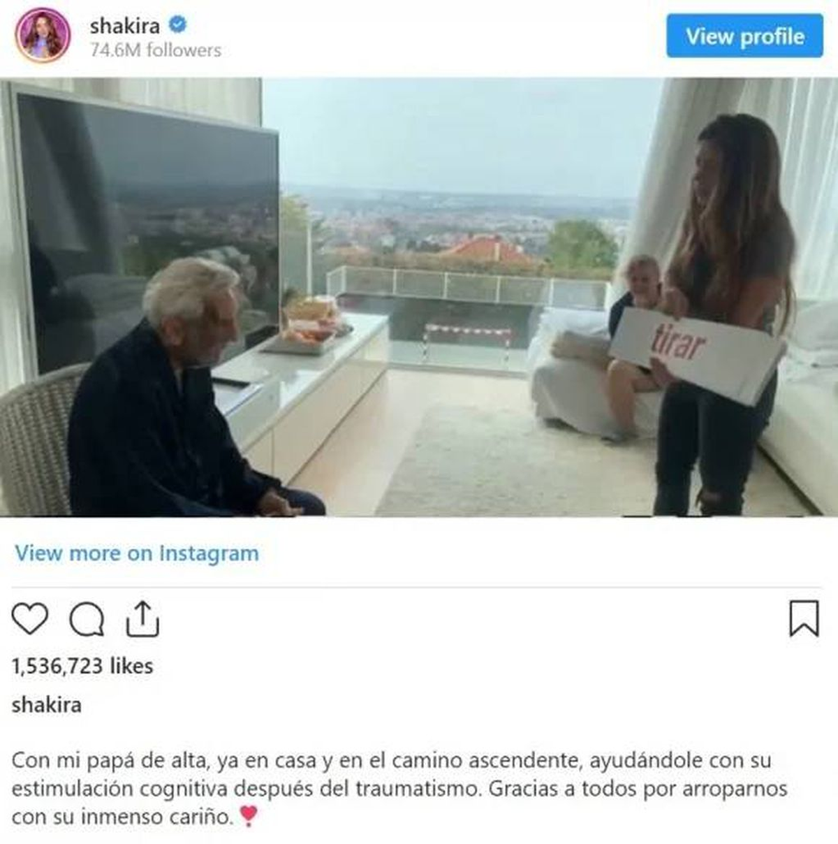 En el epígrafe, Shakira agregó un tierno mensaje para su padre, quien tiempo atrás fue noticia por varios problemas de salud: “Feliz cumpleaños al héroe de mi vida. Papá, has pasado por un Covid, dos caídas y dos operaciones. Ha sido mucho este año y sigues con 91 años enseñándome cada día resiliencia y amor sin límites”.