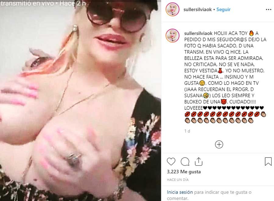 La imagen tiene más de 3000 likes y Silvia Süller recibió todo tipo de comentarios de hombres y mujeres: “Q diosa y sin cirugias!“, “Silvia te admire y sigo admirando. sos una gran mujer. la suerte no te acompaño. pero metele para adelante y que no te importe lo que digan. Hace la tuya divertirte qué la vida es una sola y hay que disfrutarla a full“, “es increíble que no estés en algún programa, sos súper graciosa y tenes mucho talento, una pena no valoren eso“, entre otros.