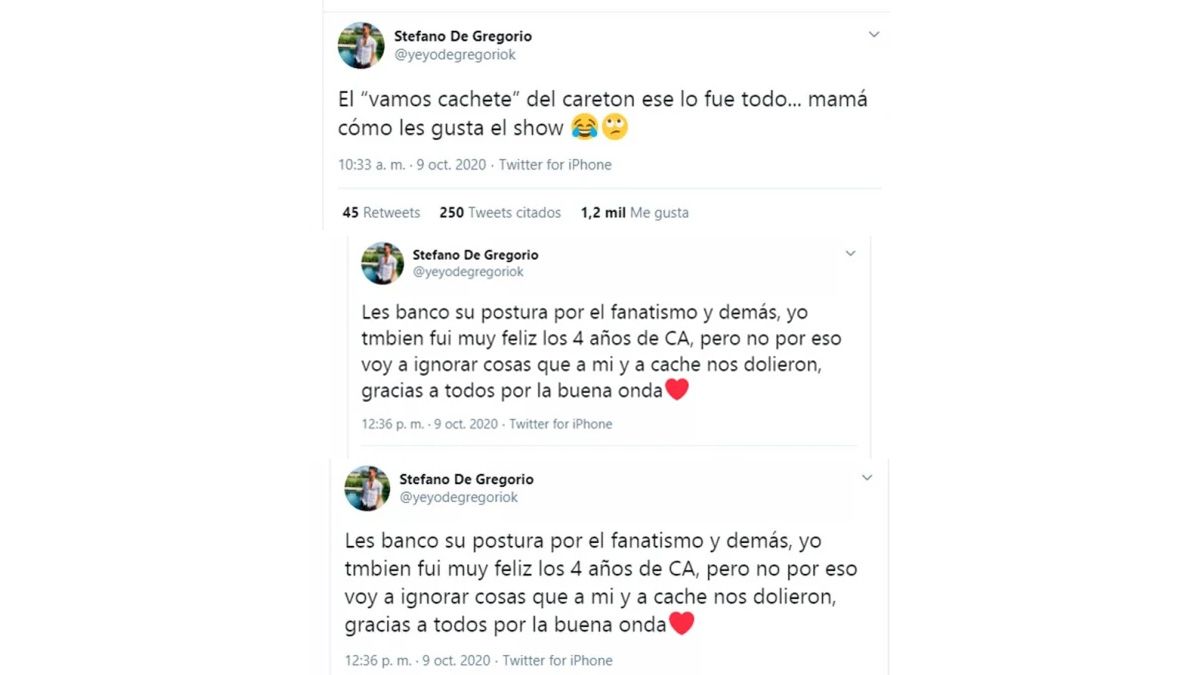 Mientras Sierra estaba como invitado en Los Ángeles de la Mañana, Stefano siguió descargando su bronca en la red social del pajarito y les dedicó un mensaje a los miles de fanáticos que tiene la recordada ficción que se emitió durante cuatro años por la pantalla de Telefe.