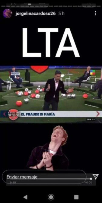 "Me estaban esperando y después de doce años aprovecharon la oportunidad", se quejó el comunicador. "El video que ustedes pasaron es del 7 de junio. Hasta el 10 de julio, que empezaron ´Flor´ Peña y otros tiradores seriales de m... en las redes como Federico D´Elía, me escribió una sola persona: la mujer de Di María. Hablamos bien, la respeto y la banco", se descargó finalmente con respecto a la historia de Instagram de Jorgelina Cardoso, la esposa del futbolista, quien se burló de él.