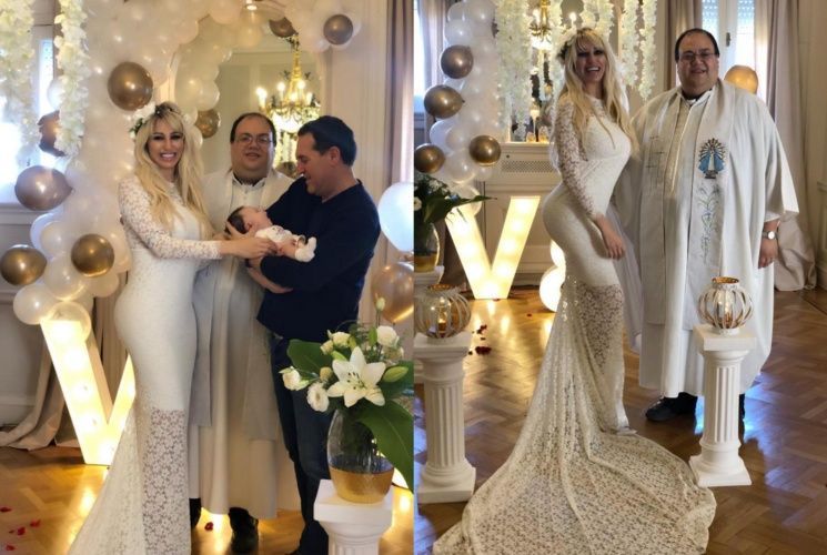 La mediática lo esperó vestida de blanco con el pequeño en brazos y el sacerdote listo para bendecirlos. Naselli ingresó al departamento que comparten totalmente emocionado y abrazó a su mujer e hijo.