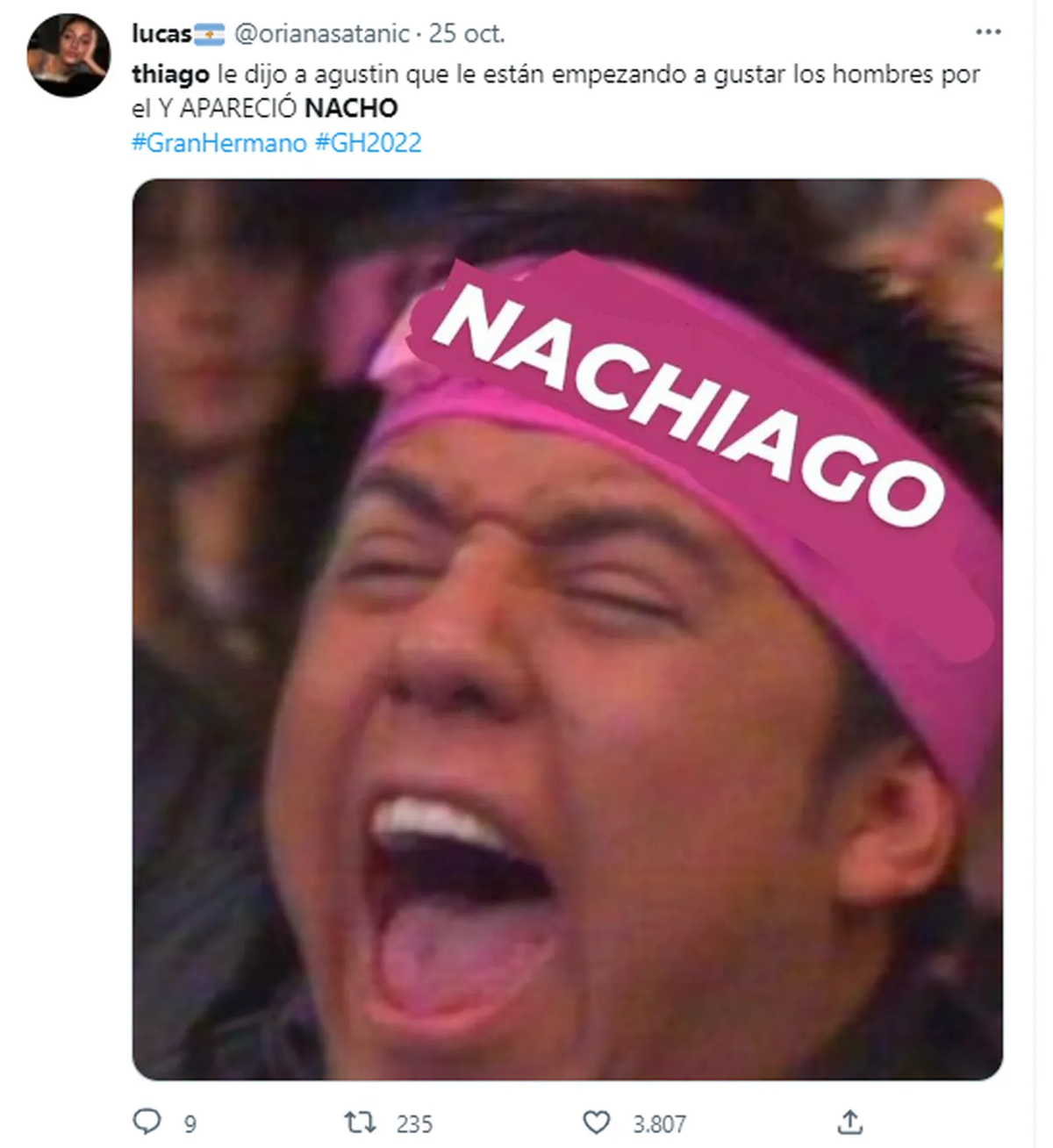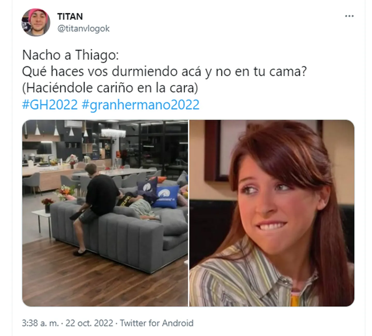 “Yo empecé a shippear a Thiago y a Nacho en broma, y ahora ando destrozada porque uno no lo invitó a ver una película al otro y se terminó poniendo triste, nunca la había vivido tanto hermanas y mas por dos trolos que se conocen hace una semana