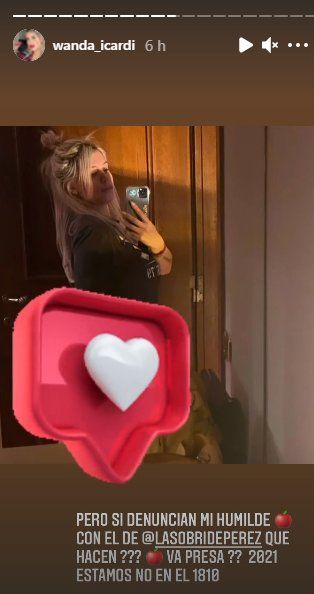 En pleno descargo, Wanda se refirió a las fotos sexies que sube Sol Pérez: "Pero si denuncian mi humilde manzanita, con el de Sol Pérez, ¿qué hacen? ¿Va presa? ¡Estamos en el 2021 no en el 1810!".
