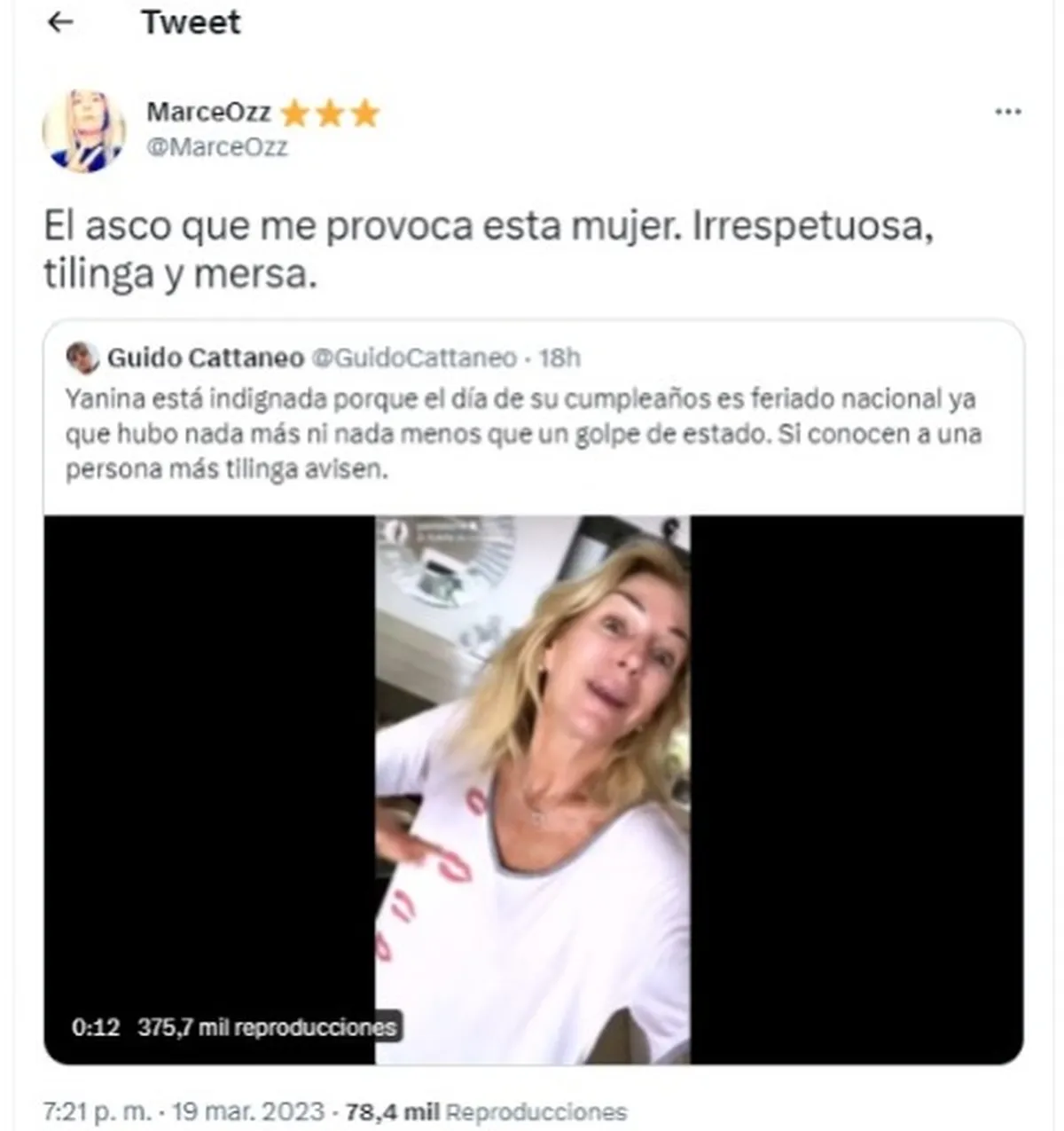 Al ver este recorte, Nancy Pazos la cruzó con todo: "Lo peor es que cree que es graciosa. Patéticamente tilinga @yanilatorre #MemoriaEsDemocracia #Memoria #MemoriaHistórica".