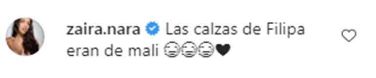 Feliz de ver a su amiga en un tan buen momento, Zaira Nara le hizo un tierno comentario sobre la ropita de la bebé: "Las calzas de Filipa eran de Mali (su hija)."