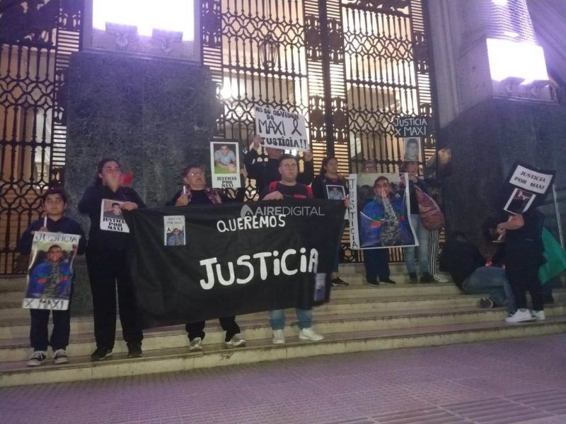 Un grupo de familiares, amigos y vecinos de Maxi Olmos caminaron este viernes por la tarde hasta la plaza 25 de mayo y se concentraron en las puertas del palacio de Tribunales en reclamo de justicia por el homicidio del joven. El muchacho de 25 años fue baleado por desconocidos que lo persiguieron para robarle la moto en la noche del 19 de septiembre, horas después del crimen del comerciante Julio Cabal.