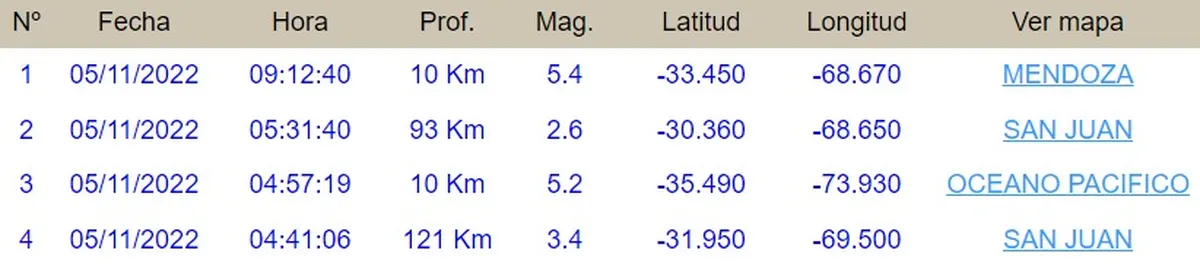 Un fuerte sismo se registró en la mañana de este sábado en Mendoza. De acuerdo con la información preliminar proporcionada por el Inpres fue de magnitud 5.4 y se registró a las 9.12.
