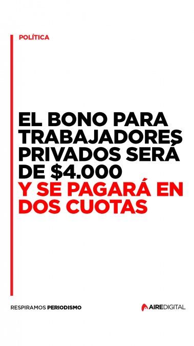 El presidente Alberto Fernández presentará un decreto como un "piso" garantizado pero la suma, será la mitad de lo que venía trascendiendo los últimos días, reflejando la resistencia mostrada por las empresas a pagarlo, en un escenario recesivo.
