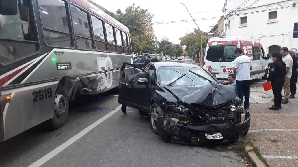 El siniestro vial se produjo a las 7:30 en Balcarce y Belgrano. Dos hombres que circulaban en un Honda Civic, aparentemente a alta velocidad, chocaron a un interno de la Línea 2.