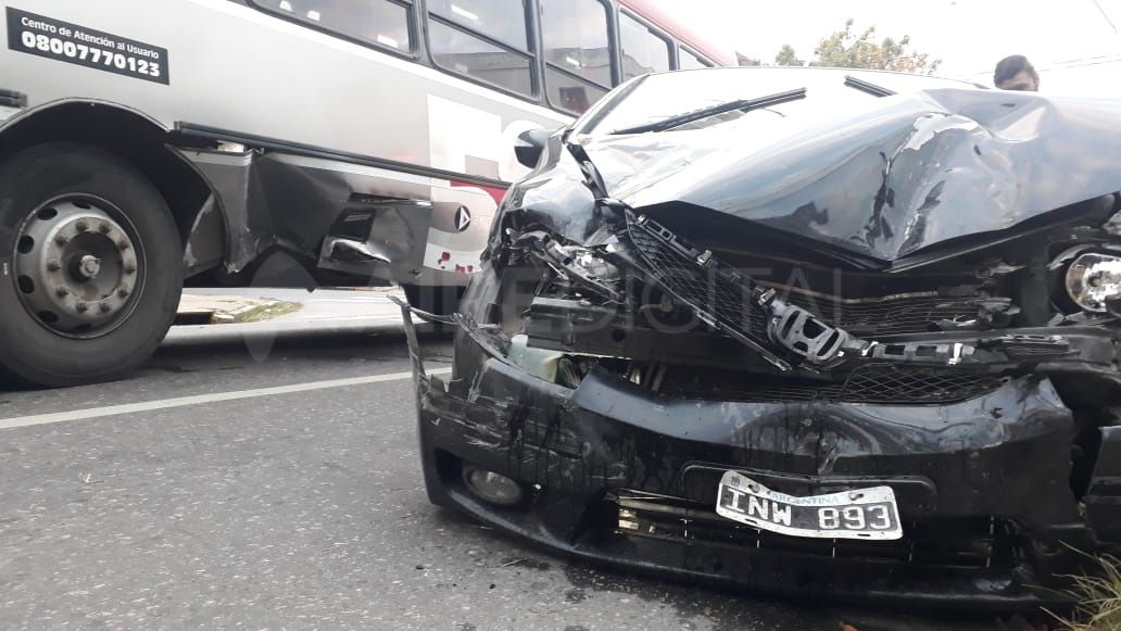 Trabajó personal de emergencias del 107 y efectivos de la policía de la provincia. Las dos personas que circulaban en el auto presentaban golpes que no serían de gravedad mientras que una pasajera del colectivo resultó con heridas leves.
