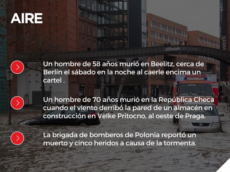 La brigada de bomberos de Polonia reportó un muerto y cinco heridos a causa de la tormenta.