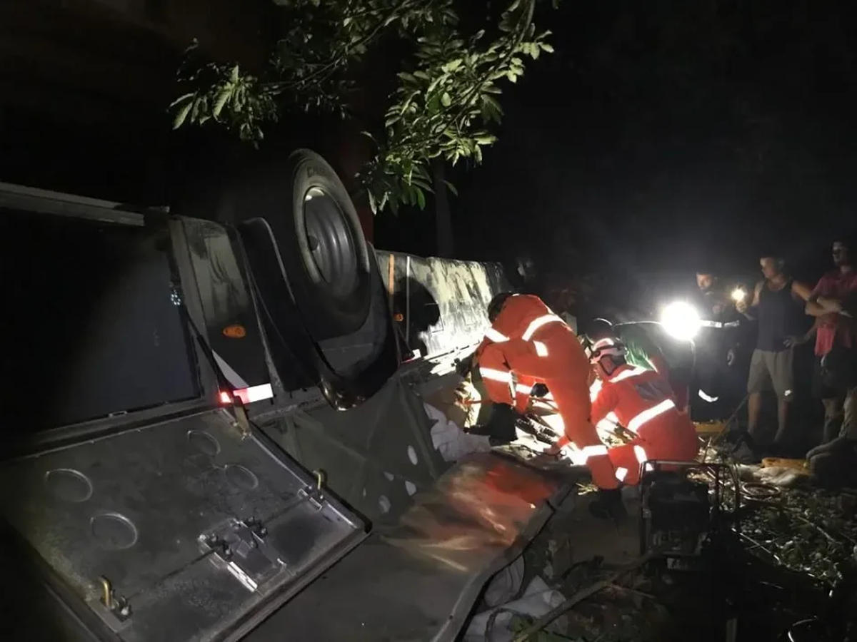 Dentro del bus iban 33 personas: 28 adolescentes, cuatro adultos de la comisión directiva del club y el conductor, cuya edad y sexo no fueron precisados, se informó desde el cuerpo de bomberos interviniente.