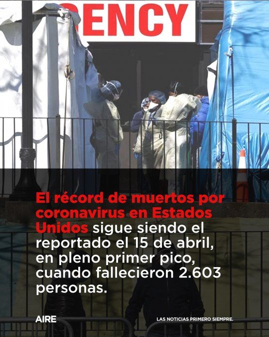Se trata de la vigésimo primera vez que Estados Unidos registra más de 2.000 muertos por coronavirus desde el inicio de su brote, que es el mayor del mundo en casos y decesos. El récord sigue siendo el reportado el 15 de abril, en pleno primer pico, de 2.603 muertos.