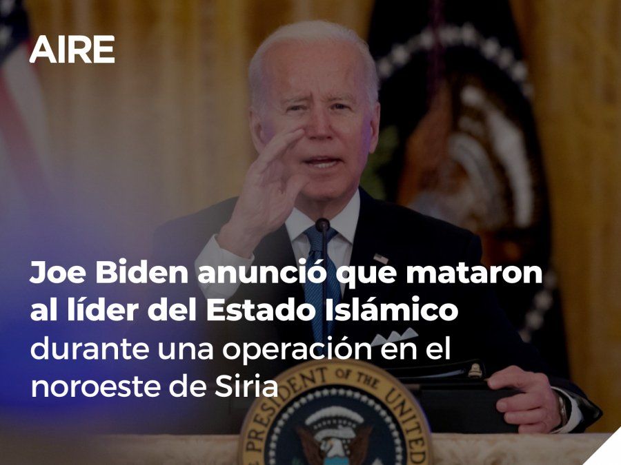 "Anoche, bajo mi dirección, las fuerzas militares estadounidenses en el noroeste de Siria llevaron a cabo con éxito una operación antiterrorista para proteger al pueblo estadounidense y a nuestros aliados, y hacer del mundo un lugar más seguro", dijo Biden en un comunicado. "Gracias a la habilidad y el coraje de nuestras Fuerzas Armadas, hemos sacado del campo de batalla a Abu Ibrahim al-Hashimi al-Qurayshi, líder del Estado Islámico", dijo el mandatario.